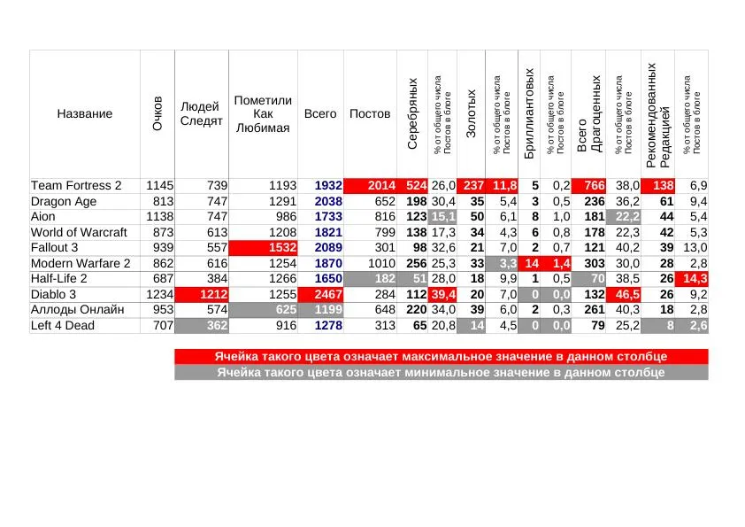 Лидер по общему числу медалек - Team Fortress 2. Второе место у восьмого Dragon Age (ага), а третье у Aion (как его штормит-то, туда-сюда...), а последнее у Left2Dead.