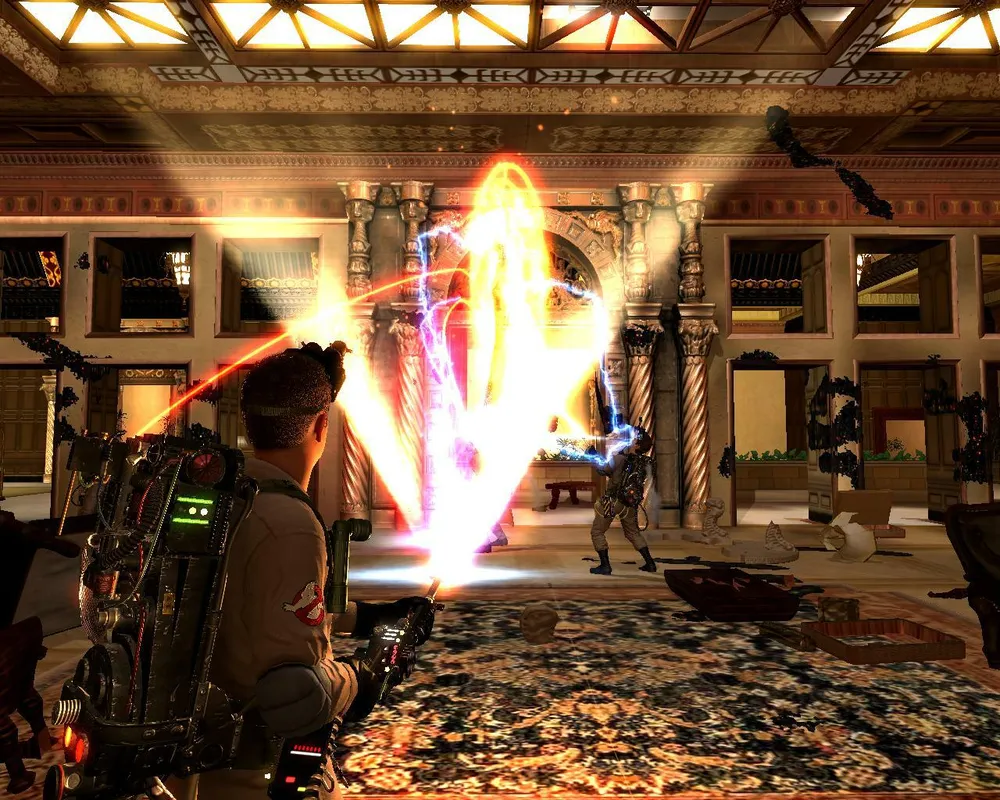 Стержень остался нетронутым, но кое-что все же изменилось и не в лучшую сторону (веяния времени, не иначе). Ghostbusters: The Video Game – не аркада, какими были предшественники, а боевик с толстым налетом консольной моды. Здесь и автоприцел, и бессмертные герои, которые изредка падают в обморок, и вагон (нет, целый состав) запрятанных по уровням коллекционных ништяков (это коллекционирование приелось еще во времена Sega Genesis). Разработчики намеренно затянули игру, заставив героя сражаться то с ожившими подсвечниками, то с призраками рыб, то с адскими гончими. В перерывах полагается искать потусторонние козюльки и проклятые артефакты. Чем-то напоминает Condemned, где мы с помощью арсенала сыщика находили улики, только здесь прибор для всего один и тот же.