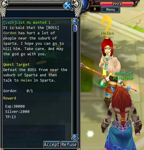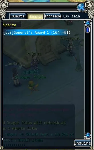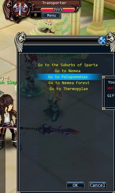 Далее через меню Search окна квестов (Q) берем задание Revenge и с помощью НПС Транспортир перемещаемся в город Nemea. Там выполняя повторяемый квест Revenge (прийдется все время летать в столицу) достигаем 50го уровня убивая волков. В этом месте обязательно активировать банку на 300% эксп рейт и следить чтобы банка всегда была активирована. На 50 уровне персонаж автоматически получит награды за окончание учебы у мастера и достигнет 52го уровня. Так же Вы получите 20 000 серебра и 2000 Еголд.