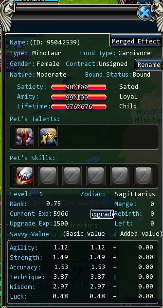 Пока Вы убиваете змеек по заданию самое время ознакомиться с Вашим питомцем. Открываем панель питомца кликом правой клавишей мыши по изображению питомца в левой части экрана и повышием его уровень нажатием кнопки "Upgrade":