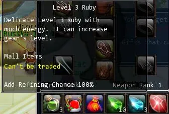 Открываем окно заточки и помещаем туда наше оружие и рубин 3го уровня: