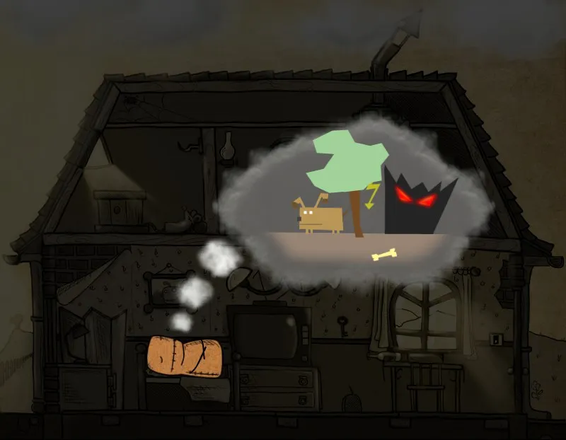 Наш герой просыпается от приснившегося ему кошмара, и, выйдя из дома, обнаруживает пропажу своей собаки.