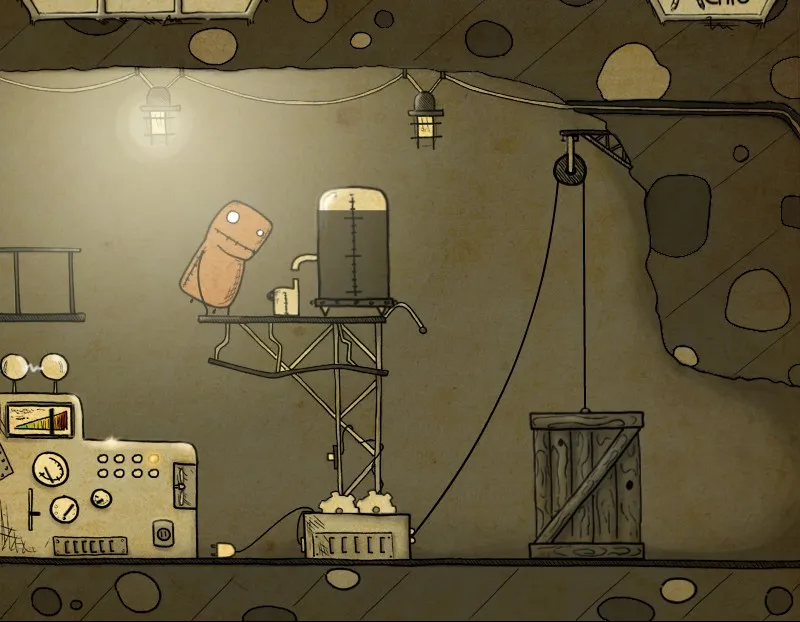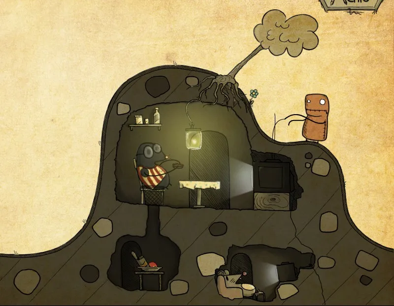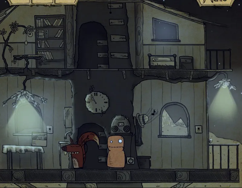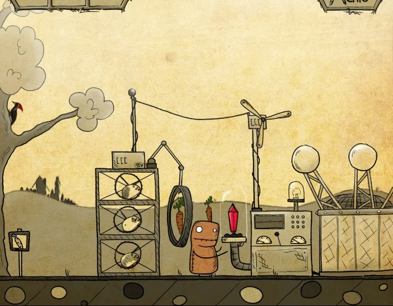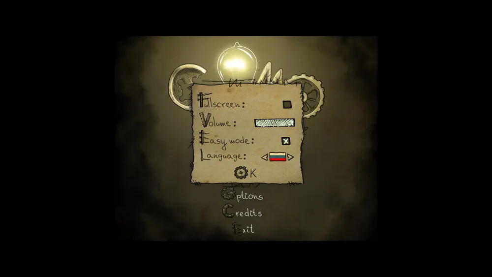 В начале игры нас встречает простое меню и задорный ритм. Минимум настроек; громкость, легкий режим, оконный или полноэкранный режим и выбор языка. О чудо, можно выбрать русский язык, за это спасибо разработчикам. Меню переведено, но в остальном, родной язык не понадобится, если только прочитать в игре некоторые советы и надписи, потому что в игре происходит невербальное общение в духе комиксов, запомнившееся еще с чехословацких (опять же, можно вспомнить творчество студии Аманиты Дизайн) мультфильмов. А осмысление дум и замыслов в стиле выплывающих облачков комиксов, в духе таких игр, как Саморост, Машинариум и Ботаникула, и чтобы понять, что нужно сделать в игре, никакой перевод не нужен.
