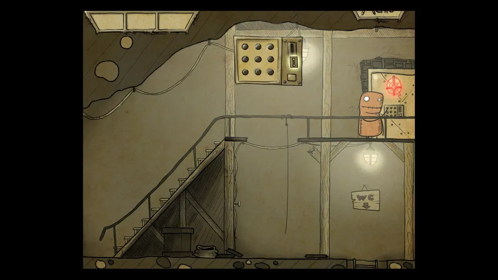 Поднимаемся по лестнице и открываем шкаф, получаем бегунок. Его надо вставить на пульте внизу и выставить вместе с остальными 2 в виде буквы Z. Тыкаем кнопки на пульте, одна из них откроет дверь.