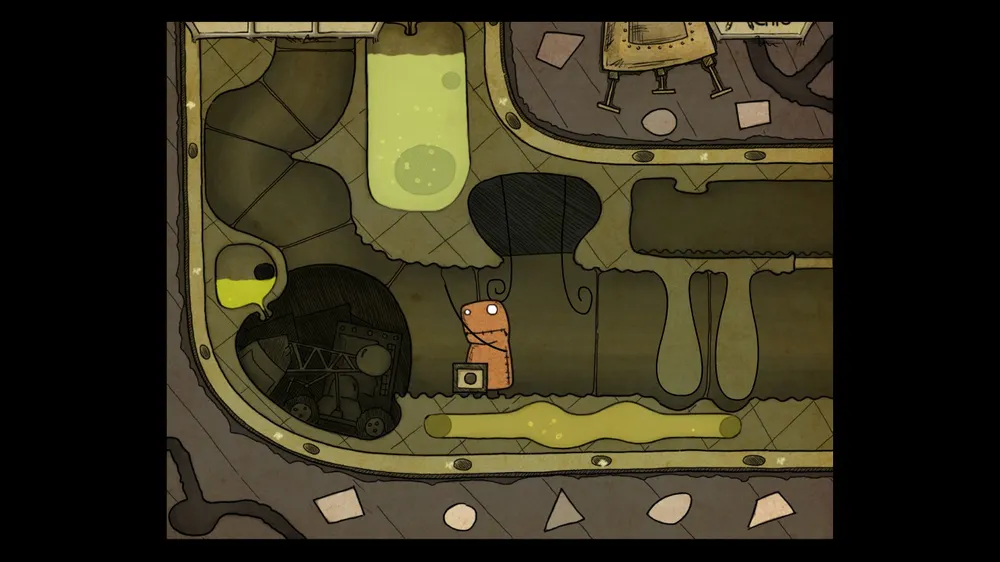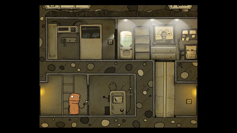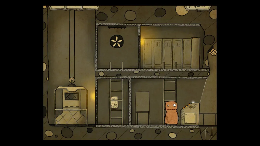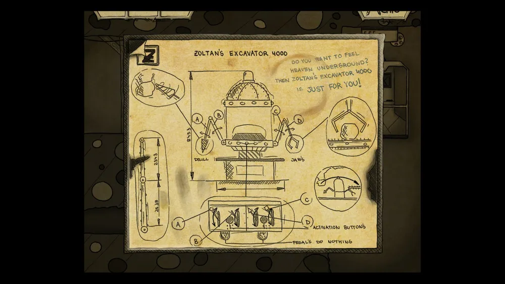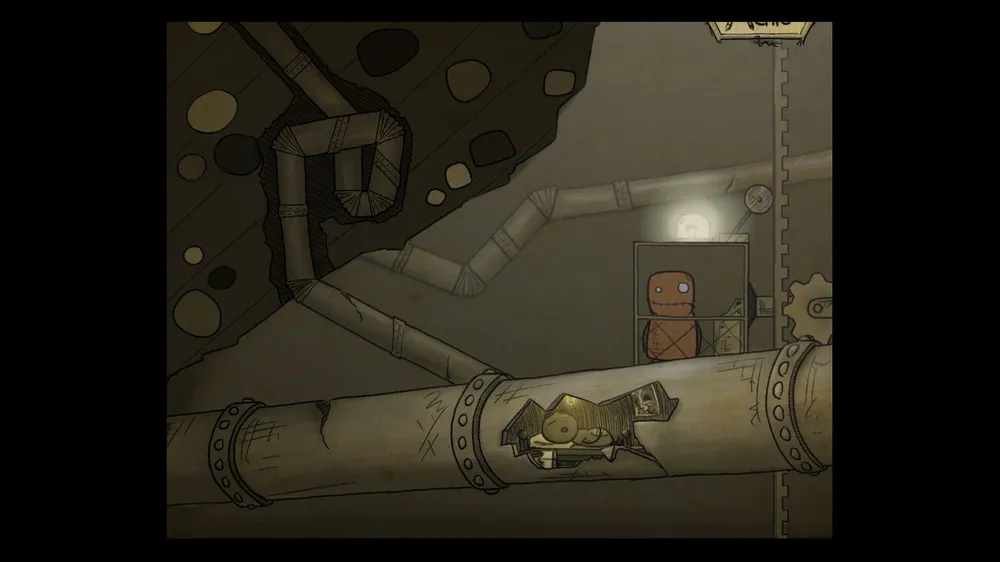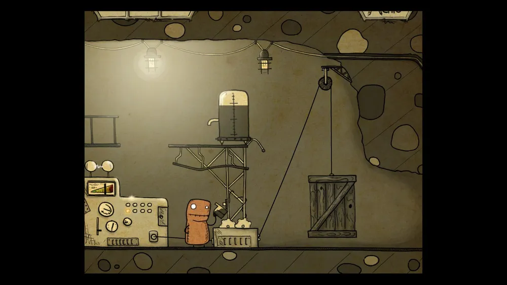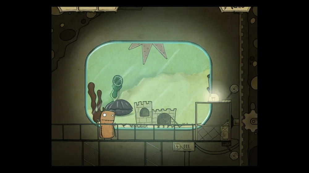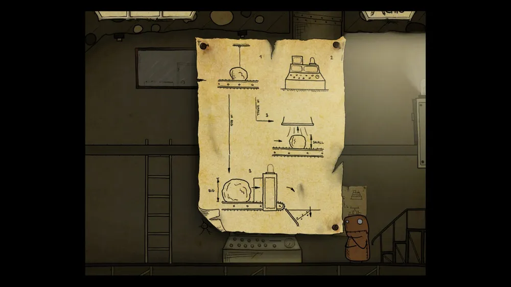 В следующем помещении тыкаем масленку. В ней пусто. Толкаем бочку и берем полную масленку. Спускаемся и включаем в розетку мотор. И заливаем масло в заклинившие шестерни, идем дальше.