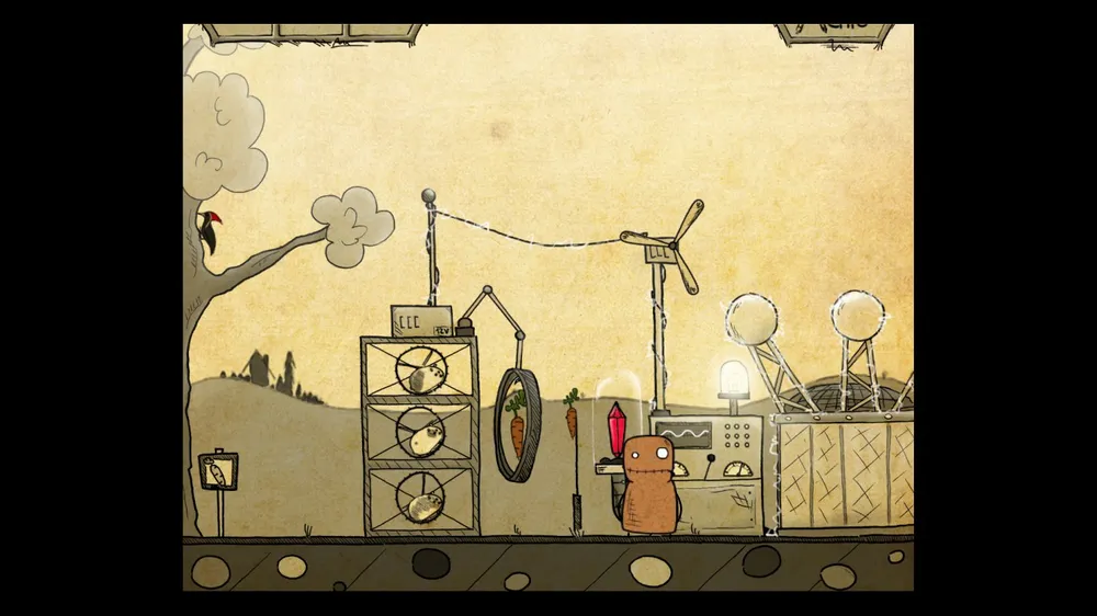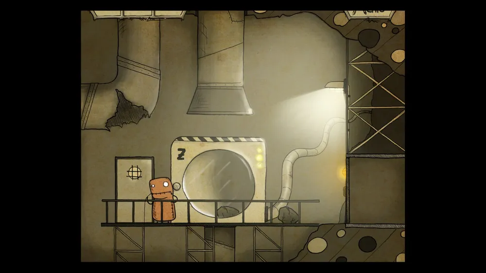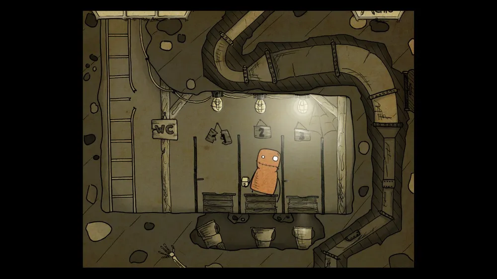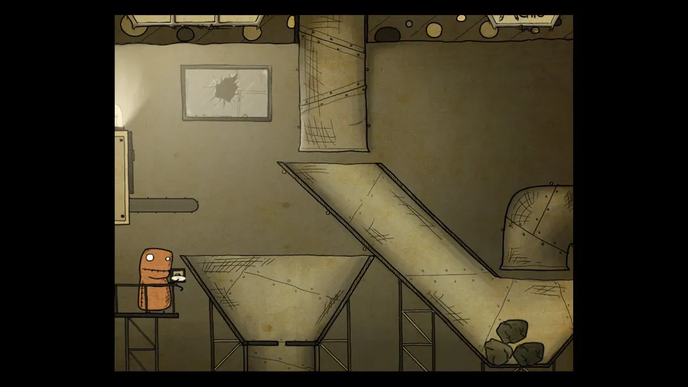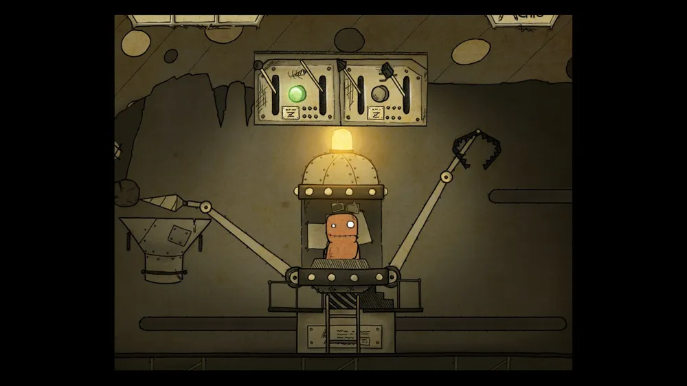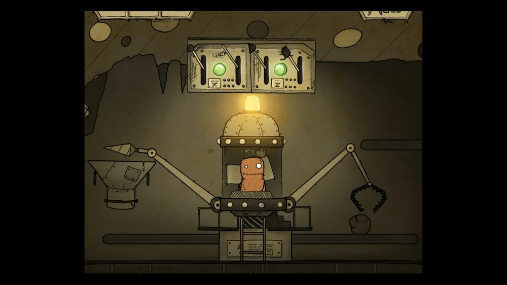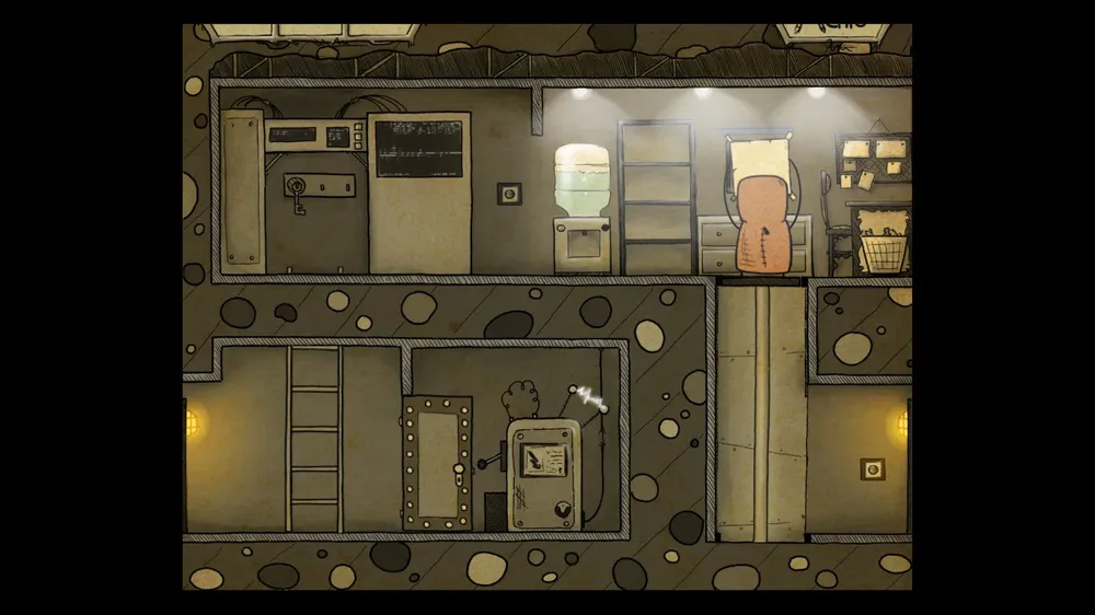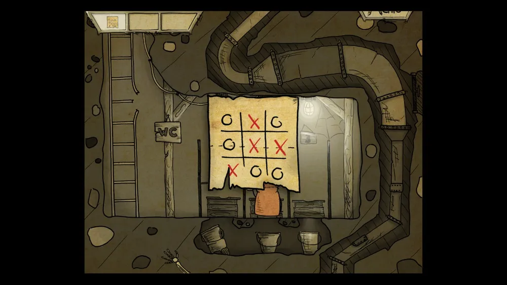 В следующем помещении тыкаем масленку. В ней пусто. Толкаем бочку и берем полную масленку. Спускаемся и включаем в розетку мотор. И заливаем масло в заклинившие шестерни, идем дальше.