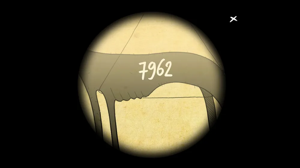 На листке был написан код от двери вверху. Закидываем леску с крючком и вводим код на панели.