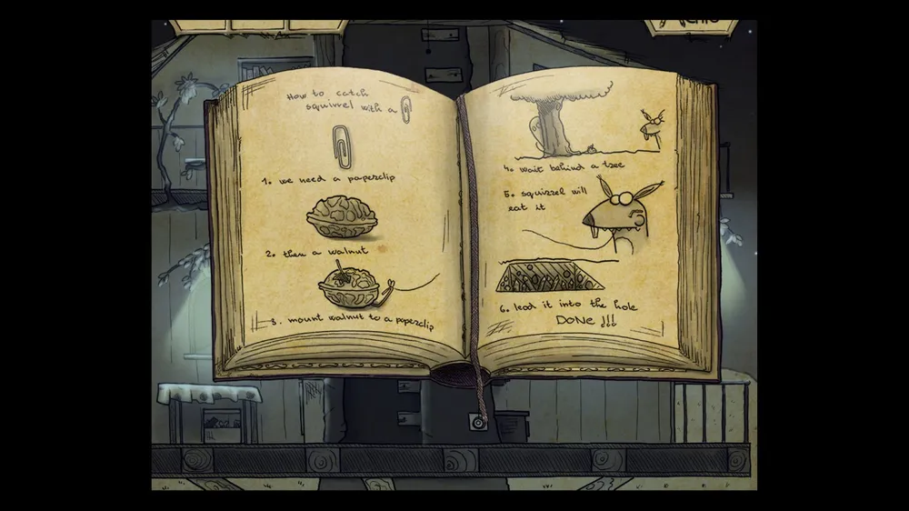 Лестница под нам ломается. Внизу берем леску с крючком и карточку из ящика слева и лезем вниз.