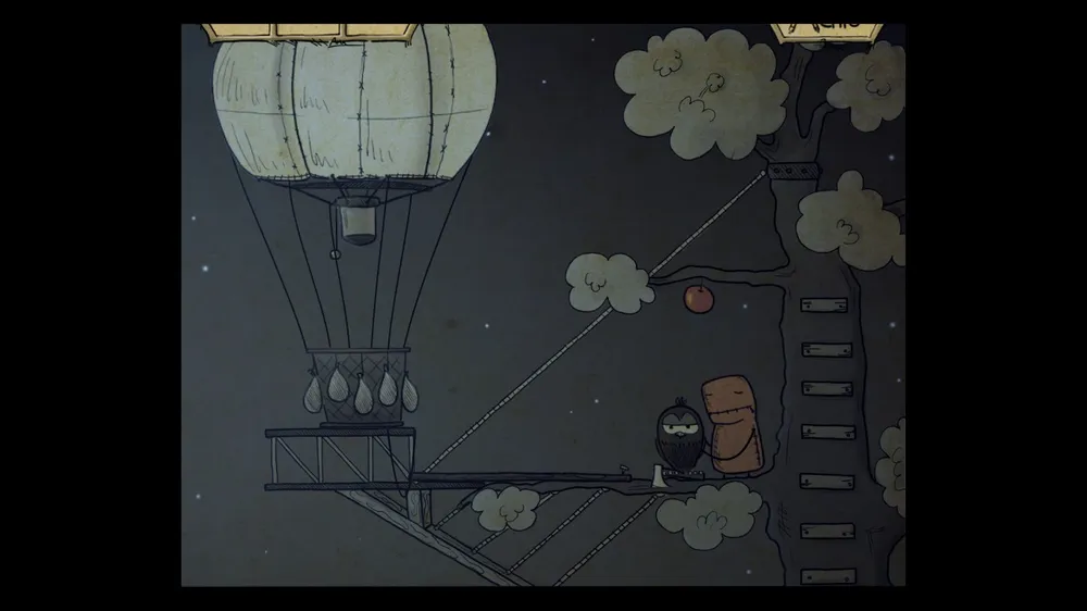 Роняем яблоко на сову. Берем топор и ставим трап.