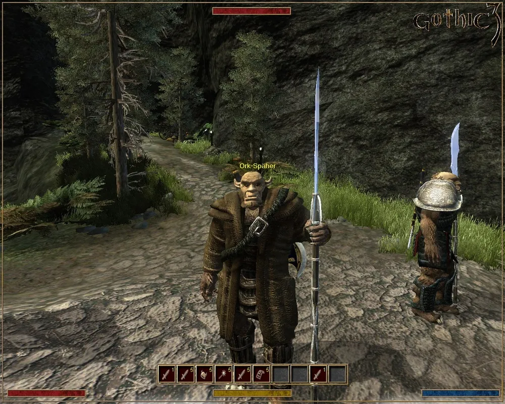 Ну а после высадки помимо дымов он наталкивается и на орков. Причем не на тупых хоринисских зверормордых образин, умевших только нечленораздельно кричать, сколиозно бегать и угрожающе махать ржавым топорищем (исключая Ур-Шака). А на орков в плащах, сверкающих доспехах, с длиннющими алебардами и секирами, о чем-то беседующих на людском (!) наречии.