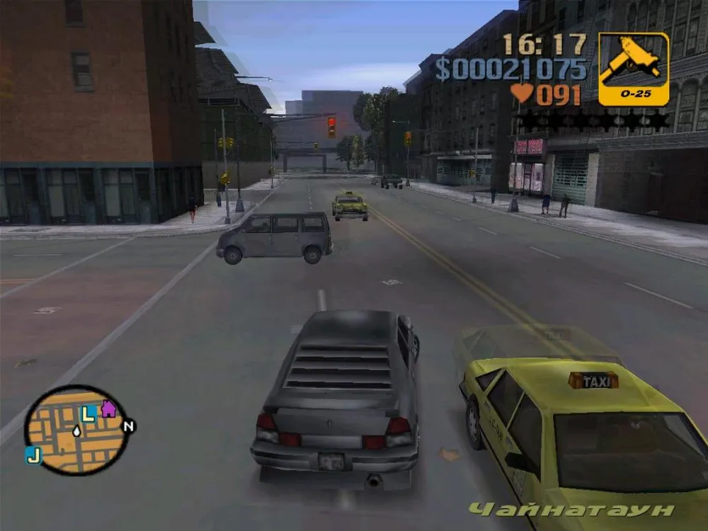 Но хватит лирики, пора за дело. Проверим на вшивость доблестную полицию. Мигалки заулюлюкали после седьмого сбитого прохожего. Отвязаться от преследователей в третьей части оказалось сложнее, чем, например, в San Andreas и, тем более, в GTA 4. Если при одной звёздочке всё более-менее просто, то при двух стражи закона уже наступают на пятки во множественном числе. Конечно, можно перекрасить машину… но я забыл где эта fuckin' контора, а карту в GTA 3 ещё не придумали, поэтому придётся обходиться своими силами.