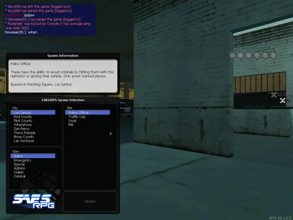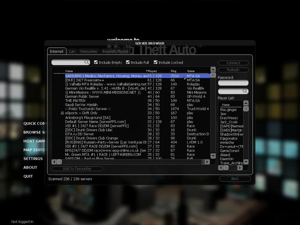 Стартовые точки можно выбирать из трех основных городов и деревень, у каждого класса - своя база. Врач начинает у больницы, ФБР - у своих огромных джипов, таксист - у автопарка. Постепенно зарабатывая деньги мы можем тратить их на еду, заправку и починку автомобиля, оружие, наркотики или даже проститутку (тоже управляется игроком). Накопив солидные деньги можем даже купить себе дом - их гораздо больше, чем в одиночной игре, купить можно практически все (даже собственный бар)! Кинув в чат вызов таксисту говорим ему, что нам нужно, и он сам решает, как туда доехать. Набив черный джип четырьмя полицейскими устраиваем карательный рейд по территории бандитов поливая огнем все их дома и машины. Постоянно матерящиеся таксисты, ругающие всех и вся за помятую машину... Это действительно живой мир в котором каждое движущееся тело - реальный игрок. И в нем действительно интересно. Клиент (бесплатный) можно скачать тут- http://mtasa.com/.