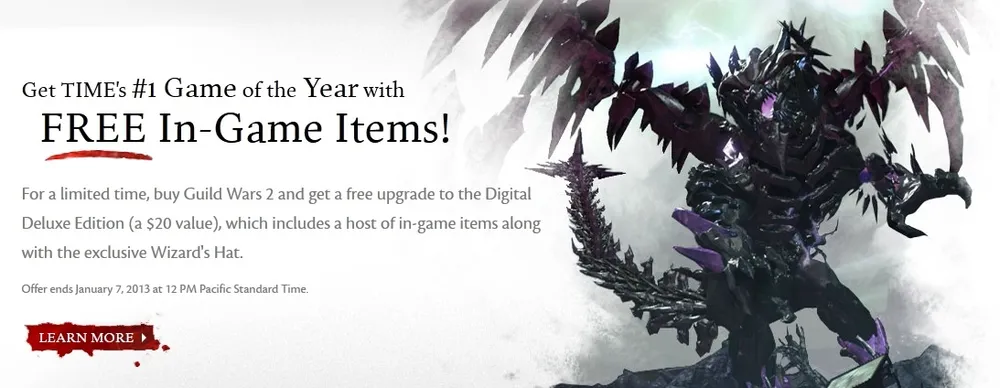При покупке Guild Wars 2 Digital Edition бесплатный апгрейд до Deluxe(Wizard) Edition!! (на буржуйском сайте)