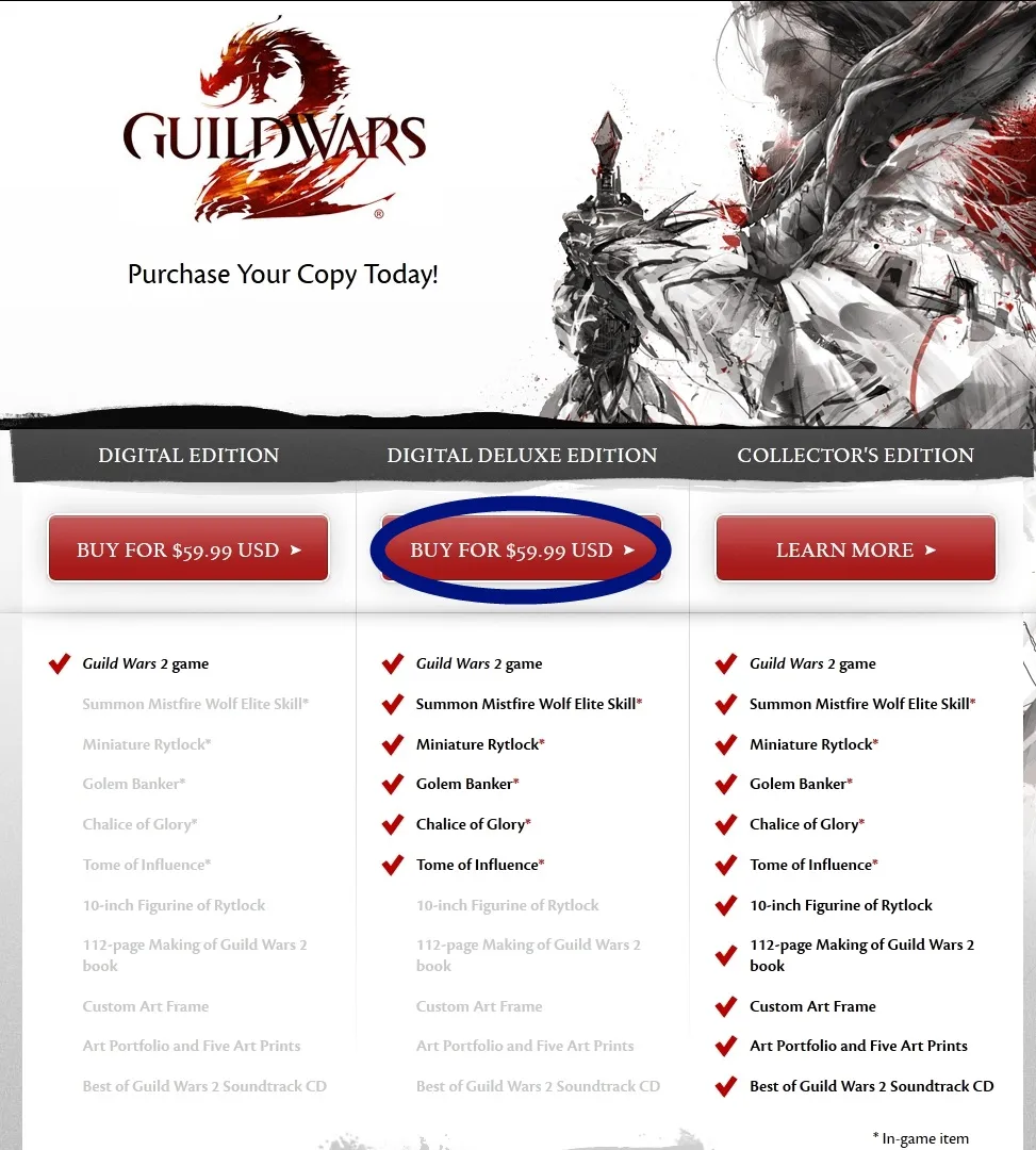 Ссылка на приобретение Guild Wars 2 Digital Deluxe(Wizard) Edition на официальном сайте.
