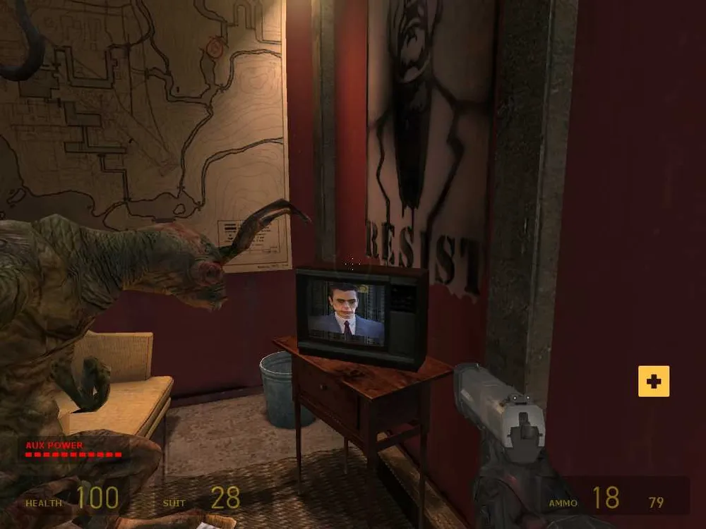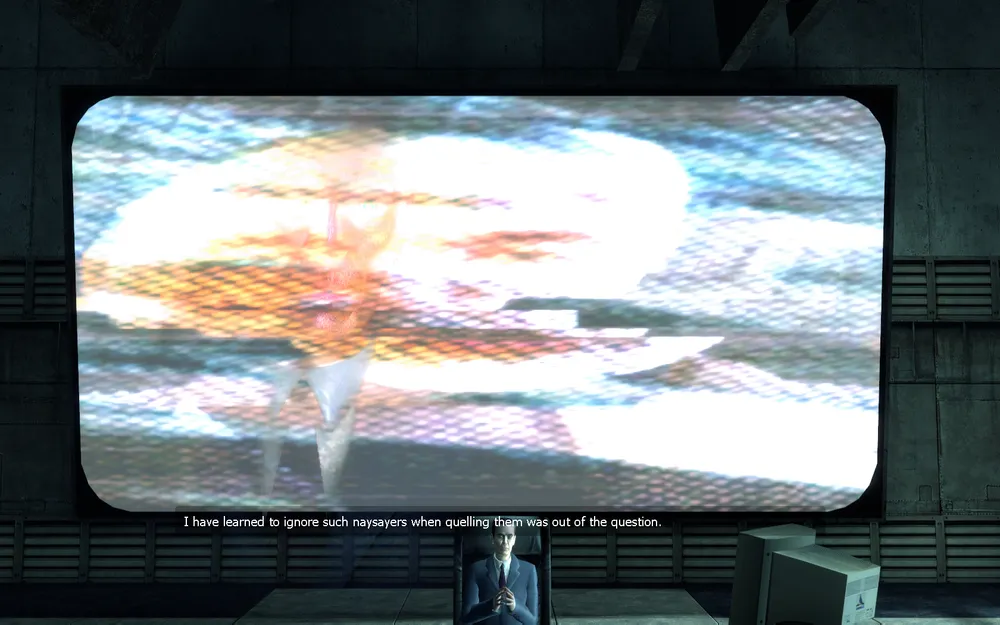 Вопрос на тему "Откуда в Portal ЖК-мониторы и беспроводные мышки" остается открытым. Ведь семичасовая война произошла во времена ЭЛТ мониторов и огромных ЭВМ с перфокартами (если судить по half-life 1). Даже во втором эпизоде на столе у G-Man'а стоит ЭЛТ монитор (картинка внизу поста)