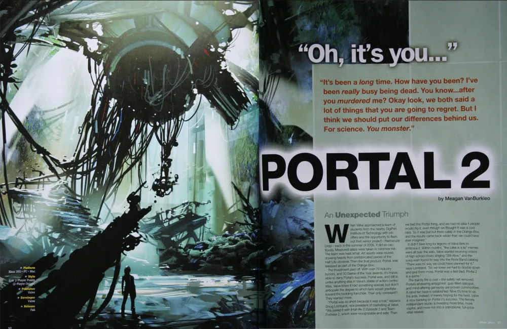 Кстати, Portal 2 жутко спойлерит концовкой Half-Life 2. Ведь если судить по артам, действие происходит в лабораториях поросших джунглями. А по вселенной Half-Life 2 мы знаем, что Альянс высушивает океаны и изменяет климат планеты, что как бы намекает...