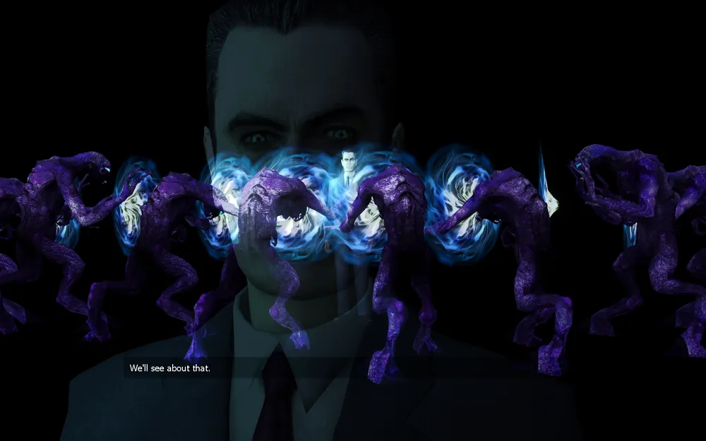 Особенность этой сцены заключается в том, что она подтверждает теорию, что человек в синем костюме использует для своих сверхспособностей мир Зэн (Xen). Мы могли наблюдать в первой части, как он заходит и выходит из рандомных телепортов, которые, как известно, действуют через этот мир.