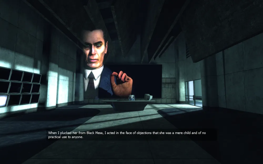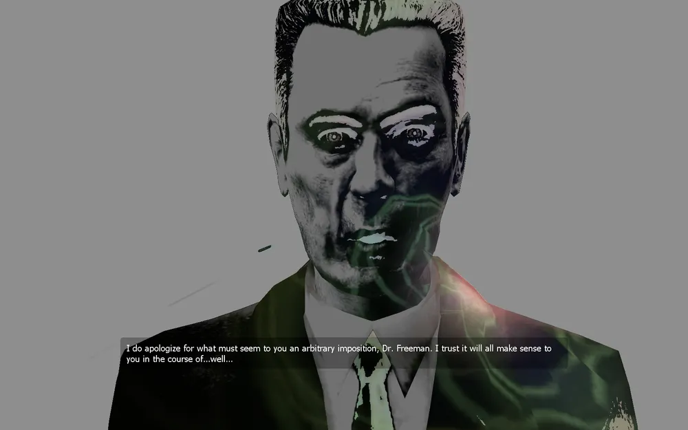 Но вот что интересно, он передает это послание прямо на глазах у Гордона, тем самым он в открытую ему заявляет: "Это я был причиной катастрофы в Черной Мезе". Не самый лучший способ добиться расположения Фримана. «Что ж… Видимо, мы не будем сотрудничать»