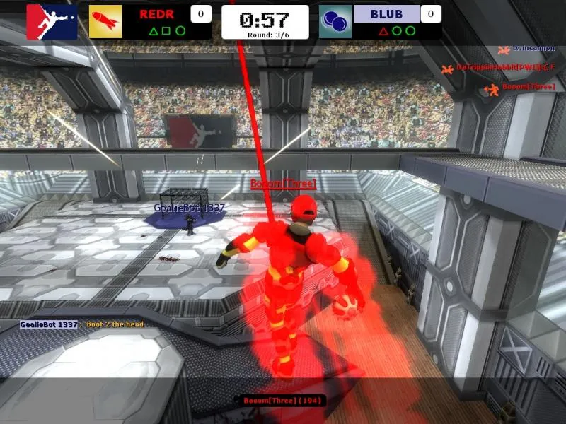 Спортивный симулятор, регби + оружие. Всё как положено - 2 штуки ворот, 1 штука мяч, игроки (количество варьируется), у каждого есть The Grappling Hook - девайс который позволяет цепляться к стенам на тросс, ускоритель (он же turbo), оружие.