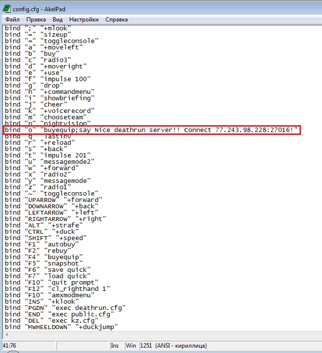 chatmode 0/1/2/ – вкл./выкл. функцию чата между клиентами: "0" - отключает "1" - включает "2" – включает в случае использования MasterProxy и нескольких RelayProxis возможность общения между несколькими Spectactors, находящихся на разных Proxy (функция должна быть разрешена на всех задействованных Proxy). При частом появление у клиента ошибки Host_Error: UserMsg: Not Present On Client 76 поддержку чата желательно отключить ;
