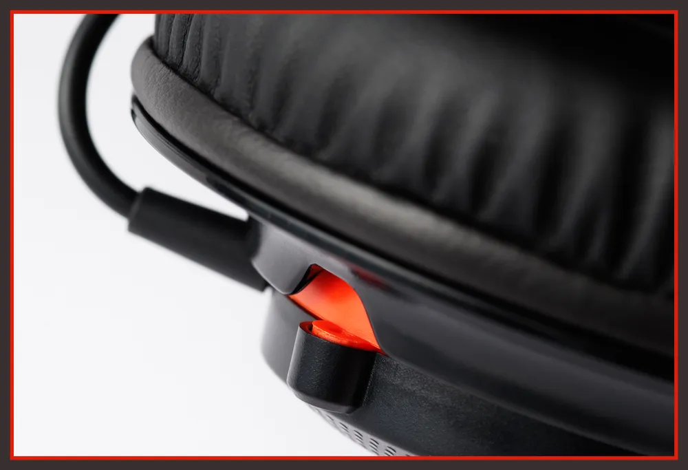 Высота оголовья настраивается с помощью выдвижного механизма. Все части его сделаны из пластика, в том числе и расширение, которое в целях повышения прочности снабжено ребрами жесткости. В верхней части оголовья расположена мягкая подкладка из поролона, обтянутая черной искусственной кожей. Чашки достаточно большие, чтобы в них поместились уши практически любого размера. Они имеют две степени свободы, что в купе с регулируемым оголовьем позволяет наушникам гибко подстроиться под форму и размер головы их обладателя. Амбушюры выполнены из тех же материалов, что и мягкая подкладка. Они обеспечивают плотное прилегание чашек к голове и прекрасную звукоизоляцию. Правда, платой за эти несомненные плюсы является отсутствие вентиляции под ним. И хотя голова от гарнитуры не устает и после многих часов ее использования, ушки в ней все равно преют, особенно когда вокруг жарко.