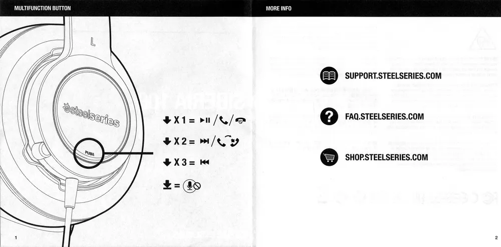Отсутствие регулятора громкости тоже не идет гарнитуре в плюс. Имеющаяся на левой чашке многофункциональная кнопка выполняет, по сути, функции медийной клавиши – воспроизведение/пауза, промотать трек вперед до конца/назад до конца, включить/отключить микрофон, снять/положить трубку – и корректно работает только при подключении устройства напрямую, то есть без переходника-разветвителя. Конкретно у меня она исправно все выполняла, когда SteelSeries 100 была присоединена к смартфону, а в случае с ПК оказалась бесполезной от слова «совсем». Вот вам, кстати, еще одно доказательство того, что данный девайс в первую очередь рассчитан на использование с мобильными устройствами, оснащенными 4-полюсным разъемом mini-jack 3,5 мм.