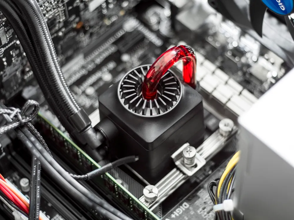 Копаться в системе или как-то доводить ее перед эксплуатацией не нужно, внутрь уже запущен хладагент, сделанный из раствора воды и диоксида кремния. Система запаяна и герметична. Можно просто установить ее, запитать вентиляторы и пользоваться.