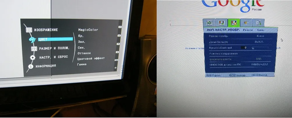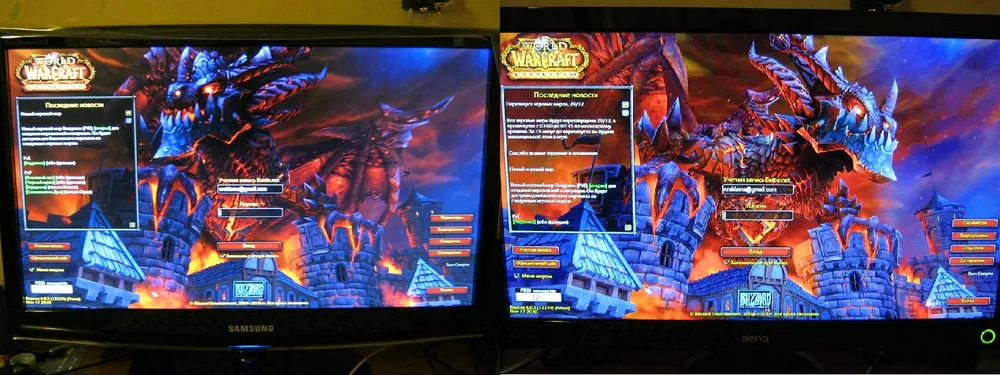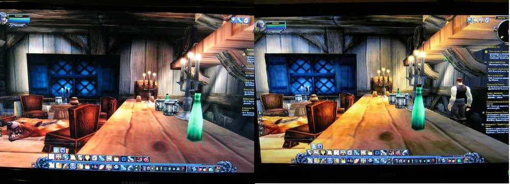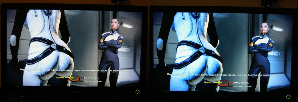 слева Samsung 2333T, справа BenQ VW2420H. Оба монитора на установке "игра" со 100% яркостью и контрастом..