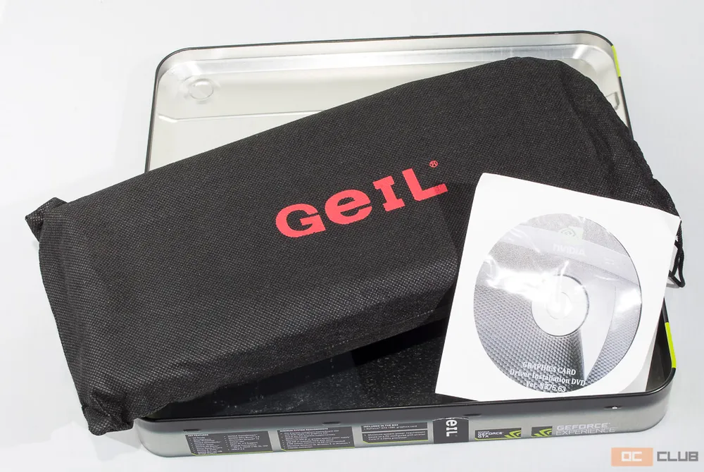 Открываем нашу «магическую шкатулку» и видим там саму GTX 1080 в тканевом чехле с логотипом компании. Других защитных приспособлений, вроде поролоновых прокладок пока не появилось. К слову, продукция EpicGear в таких же боксах имеет внутри мягкий каркас, в котором укомплектовано всё содержимое. Возможно, GeIL намерено отказалась от этой идее, поскольку карта занимает всё пространство и особо навредить себе своим же весом практически не способна. С другой стороны, защита лишней не бывает, особенно при транспортировке. Сколько уже было забавных (нет) видео о том, как сотрудники транспортных компаний иногда обращаются с посылками.