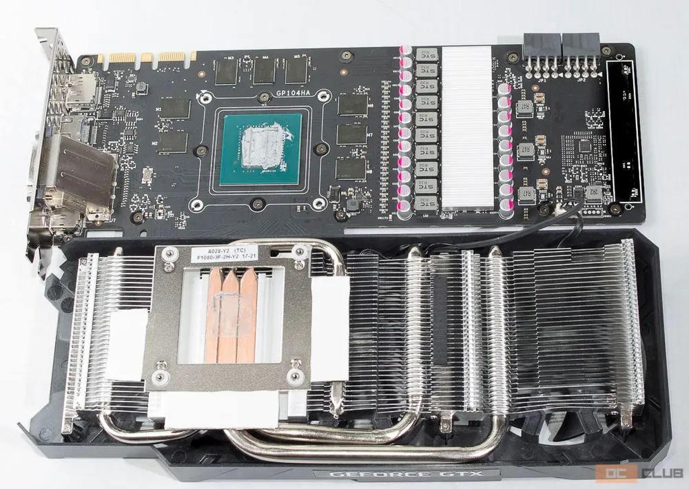 Что ж, давайте разбирать, будем смотреть, как дела обстоят внутри. Как и было более чем ожидаемо СО полностью идентична той, что была у GeIL GeForce GTX 1070. Я бы даже сказал, что она не просто идентична, а просто та же самая, об этом говорит даже маркировка наклейки на подошве радиатора «A028».