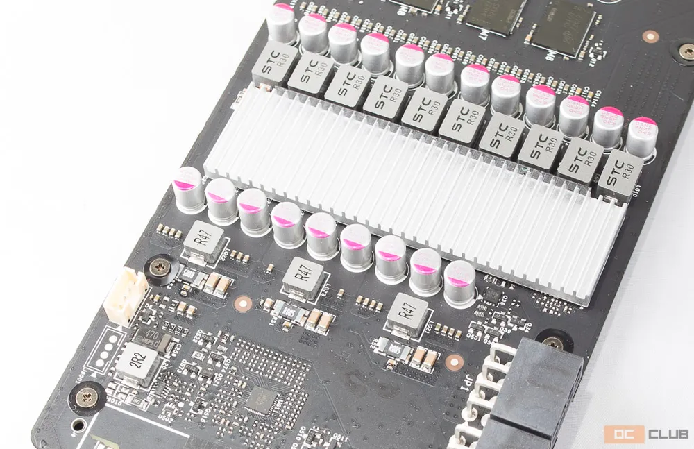 - Наличие термопрокладок для чипов памяти и узла VRM.