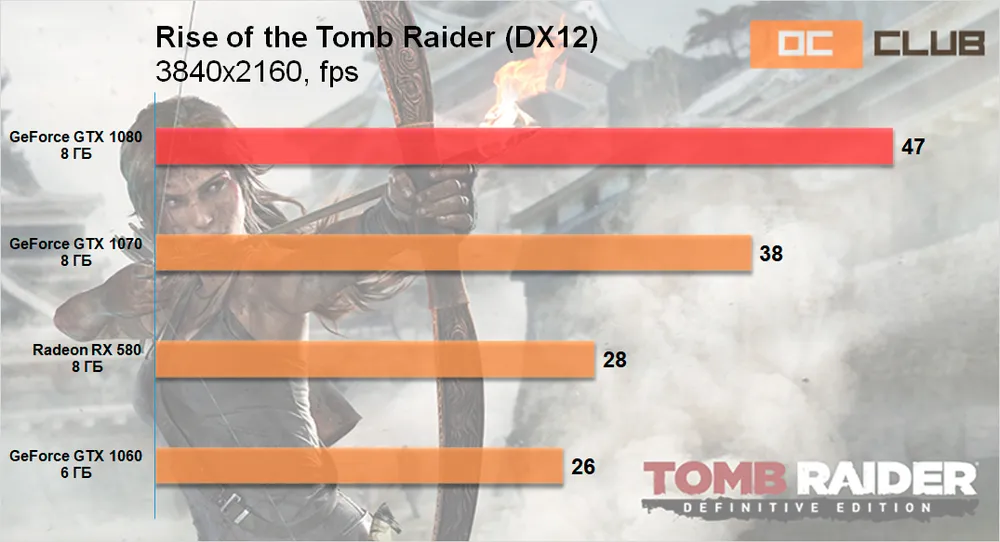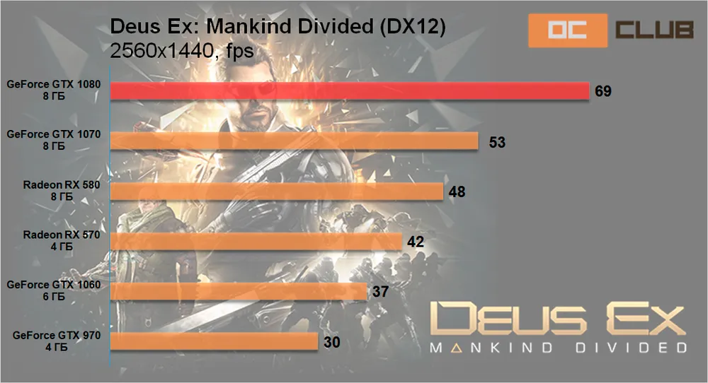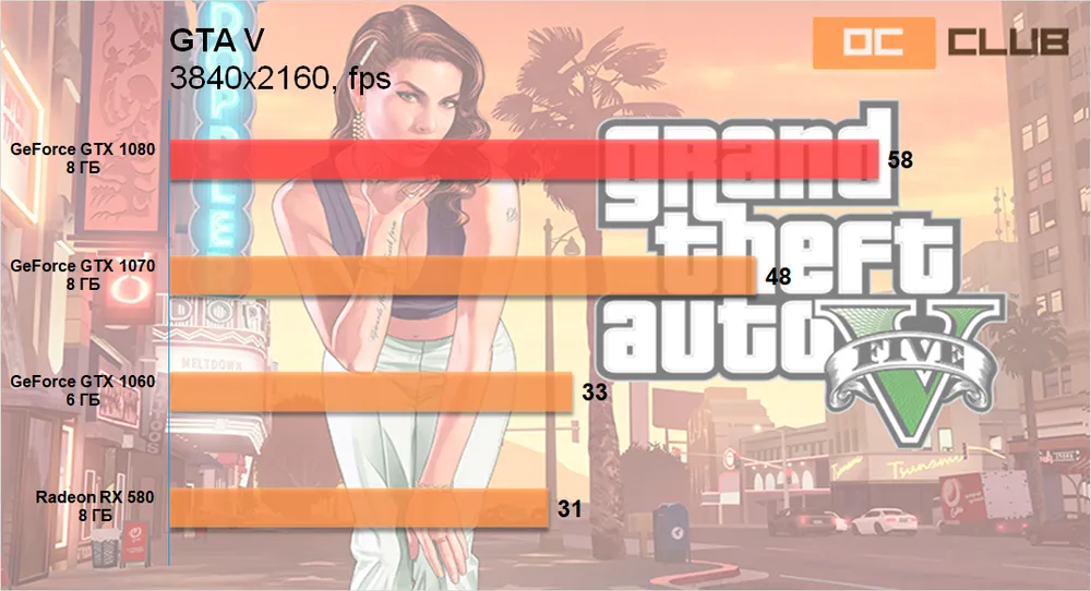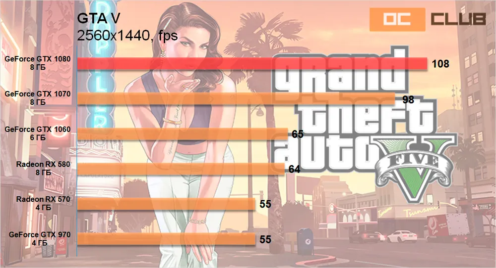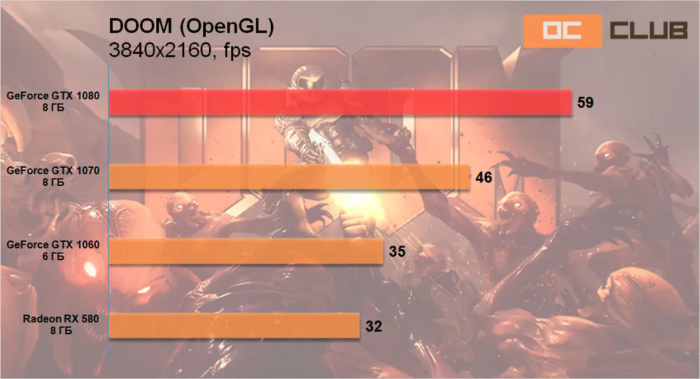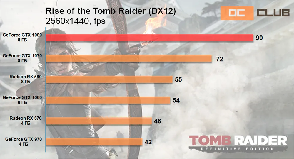 Для GTX 1080 наиболее распространённое разрешение Full HD (1920x1080) уже считается не серьёзным, поэтому тестирование проводилось в целевом для данного чипа WQHD (2560x1440) и более или менее приемлемом 4К (3840х2160), хотя для последнего есть Ti-версия.