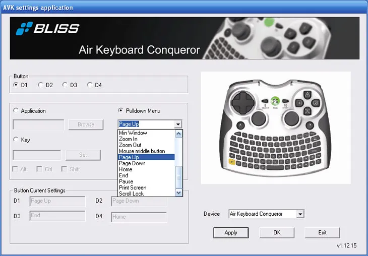 Настройка дополнительных клавиш Bliss Air Keyboard Conqueror
