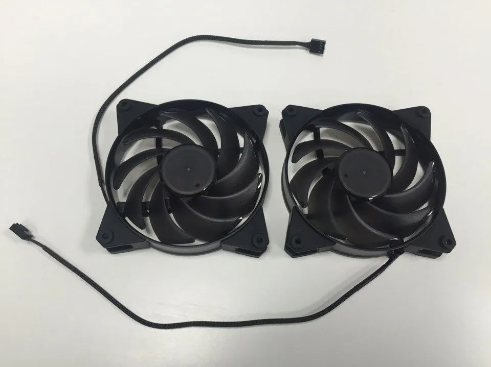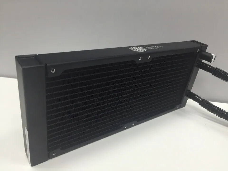 На всю массивную поверхность радиатора (275 x 118.5 x 27 мм) устанавливаются два 120-миллиметровых кулера модели MasterFan Pro 120 AB.