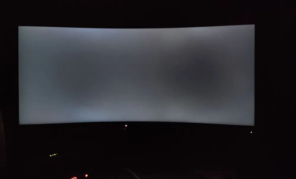 Подсветка равномерная. На снимке, сделанном в темноте при большой выдержке, заметны скорее более темные области в центральной части экрана. При прямом взгляде глоу-эффект отсутствует. Если смотреть под большим углом, неравномерность подсветки заметнее бросается в глаза, появляются небольшие желтоватые области – но это неудивительно, ведь изогнутый монитор по определению не рассчитан на большие углы обзора.