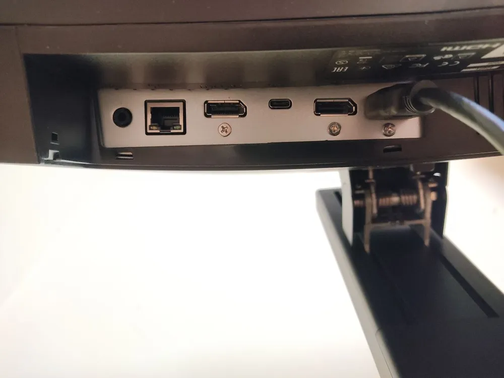 Внешнее исполнение Brilliance 346P – строгое и деловое. Черные цвета (сзади – с простой текстурой), никакой диодной подсветки или металлических вставок. Большинство входов расположено в задней части устройства и смотрят вниз: это питание, два Display-порта 1.4, один HDMI 2.0, USB-C 3.2 второго поколения, сетевой вход и 3.5 мм аудиовыход. А вот USB-хаб находится сбоку, в нем 4 выхода, причем один для быстрой зарядки.