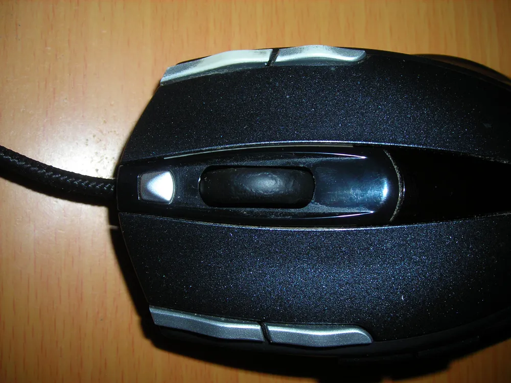 Кнопки. Их у мыши, помимо двух основных и колесика, шесть. Две серебристых справа служат для настройки разрешения с шагом в 100 DPI, для чего необходимо зажать кнопку (верхняя для оси X, нижняя - для Y) и вращать колесико. А вот две серебристых и две черных слева настраиваемые, что чрезвычайно удобно при игре, например, в S.T.A.L.K.E.R.: аптечка, бинт, перезарядка и еще что-нибудь.