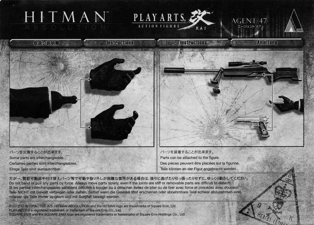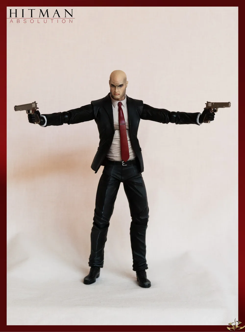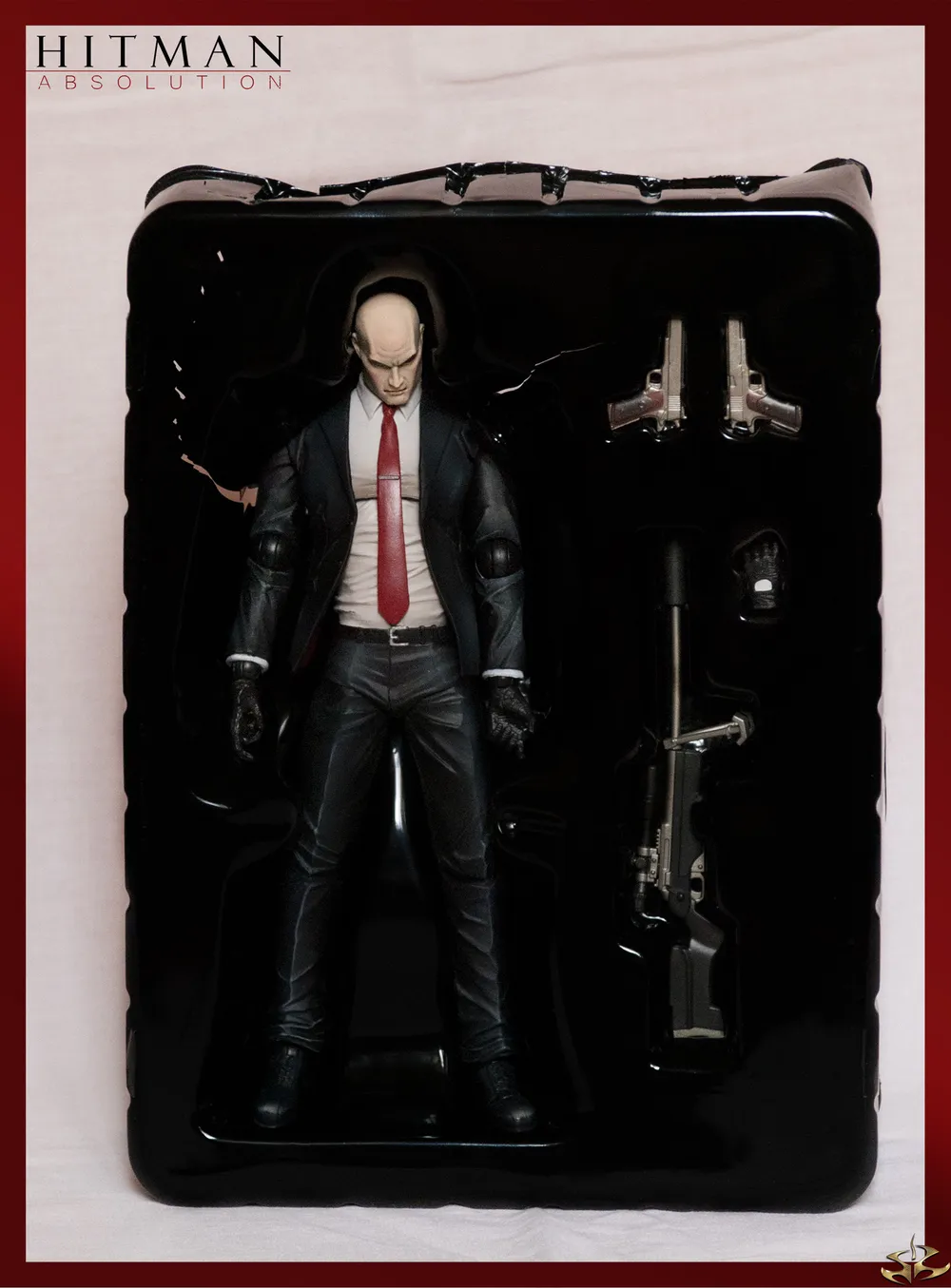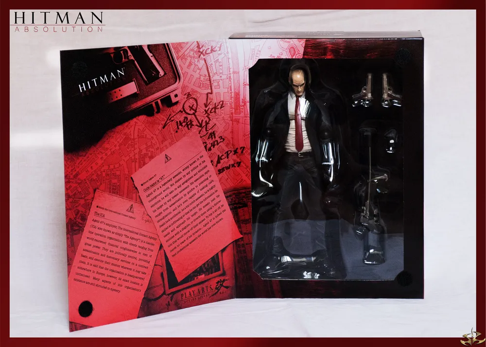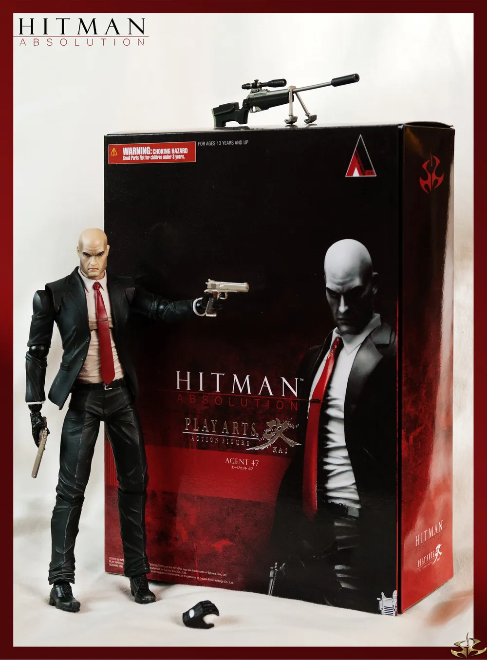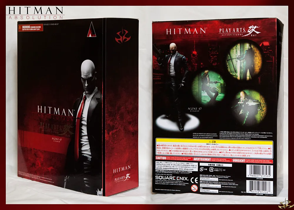 Мое знакомство с Лысым началось со стимовской распродажи. Как-то совершенно случайно удалось поймать день, когда Hitman: Absolution стоил особо дешево. За окном в тот момент вовсю бушевало лето, свободного времени было вдоволь, так что грех было не потрафить собственному любопытству. А тут еще и Play Arts KAI подоспели с экшен-фигуркой 47-го. Далее все тоже складывалось довольно-таки удачно: продавец подтвердил, что доставляет товар в Россию, и фигурка добралась до меня из Гонконга менее чем за месяц, аккурат ко дню рождению меня любимой вот в такой стильной коробочке. Сзади вид коробки несколько портят иероглифы, но что делать, нелокализованная юговосточно-азиатская версия.
