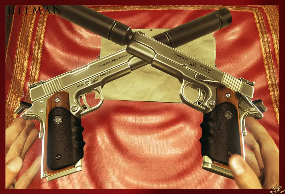 Что не очень нравится, так это явные, будто намеренно выпяченные шарниры в коленных и локтевых суставах, особенно в локтевых. Несколько неестественно смотрятся и плечевые суставы-шарниры: зазор между туловищем и рукой больше, чем хотелось бы, будто пиджак оказался Агенту мал, и рукава пошли отрываться по шву. Диапазон движения головой ограничен, вверх она практически не поднимается. Хитмен обречен на взгляд исподлобья. Как, впрочем, и на легкую сутулость. Посему заставить его целиться из снайперки в положении лежа невозможно. Как ни старайтесь, в окуляр прицела он будет глядеть... макушкой. %) Жаль, потому что с винтовкой наш герой выглядит очень харизматично. Да и с сильверболлерами он неплох. В любом варианте, оружие в руке лежит как влитое, не выскальзывает и не болтается.