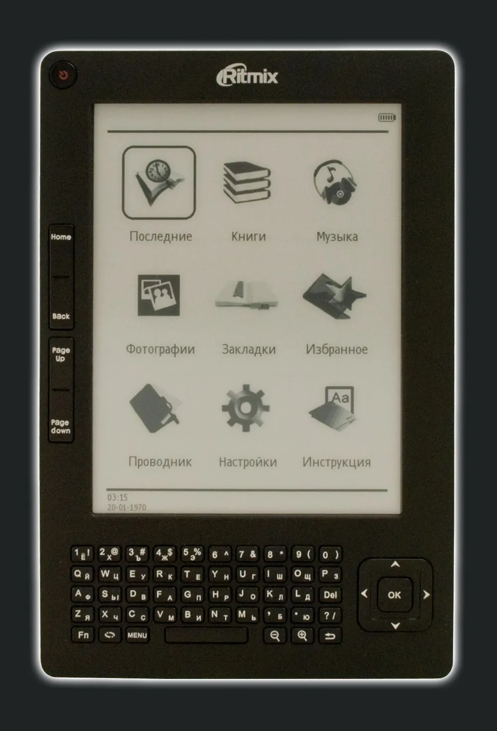 Ritmix RBK-520 – это электронная книга с полноценной QWERTY-клавиатурой, обеспечивающая дополнительные возможности. Уже сейчас реализован поиск как по файлам, так и по тексту книг. А в ближайшем будущем возможности клавиатуры ещё более расширятся – уже ведется работа над добавлением блокнота, также в планах добавления словаря. При этом все книги данной модели, купленные ранее, будут иметь возможность обновления прошивки и расширения функциональности. В качестве e-book reader'а устройство поддерживает большинство форматов книг и изображений. Кроме того в устройстве имеется и музыкальный плеер.