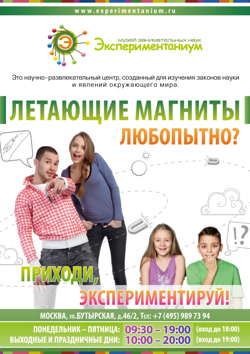 Сертификат на посещение Музея занимательных наук "Экспериментаниум" – это научно-развлекательный центр, созданный для изучения законов науки и явлений окружающего мира. "Экспериментаниум" – это настоящий научный аттракцион, который дает интересную и доступную возможность непосредственного участия в экспериментах, опытах и других познавательных действиях. Сертификат действует на разовое посещение музея в любой день до 1 сентября 2011.