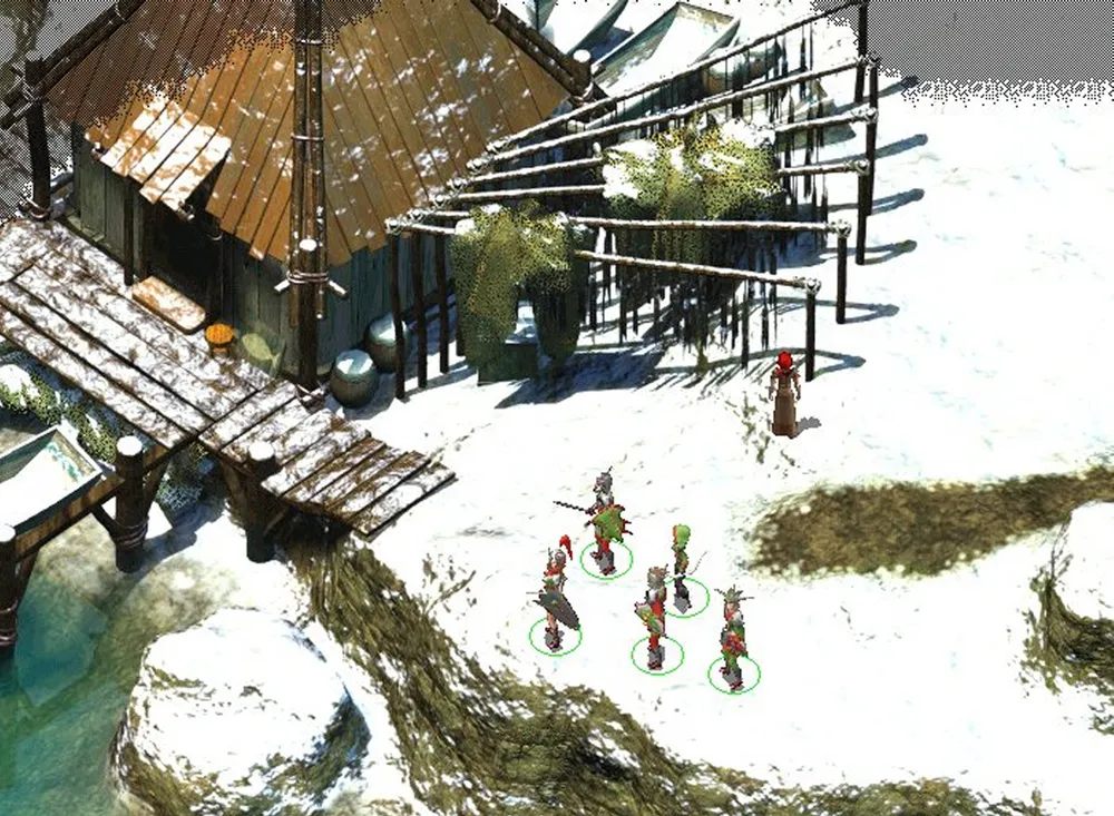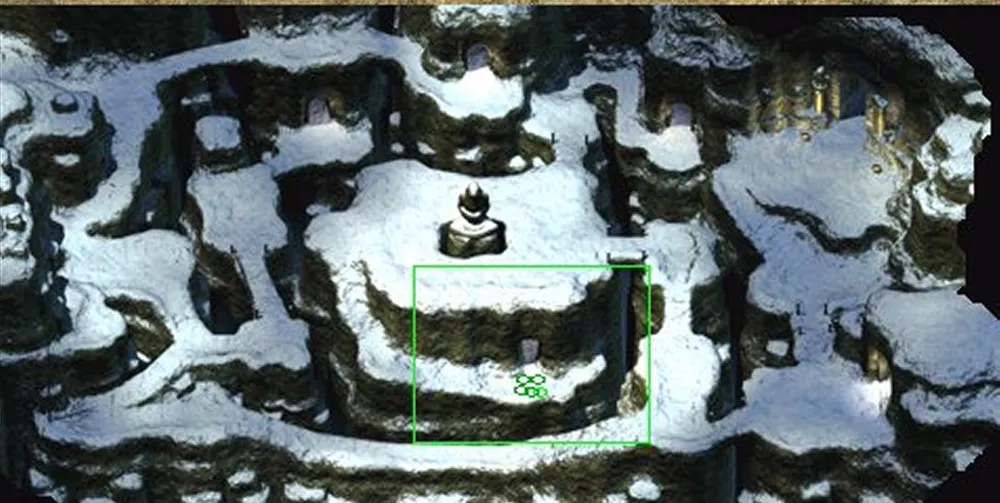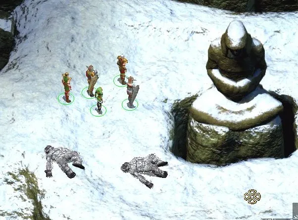 Мы на леднике, заполненном троллями. Причём их мало уложить – надо ещё и прижечь огнём! (Поэтому стоило копить огненные стрелы и беречь оружие с аналогичным уроном.) Пока не очистите поверхность, не стоит входить в здание в центре ледника. А когда очистите – заходите через нижний, тройной вход.