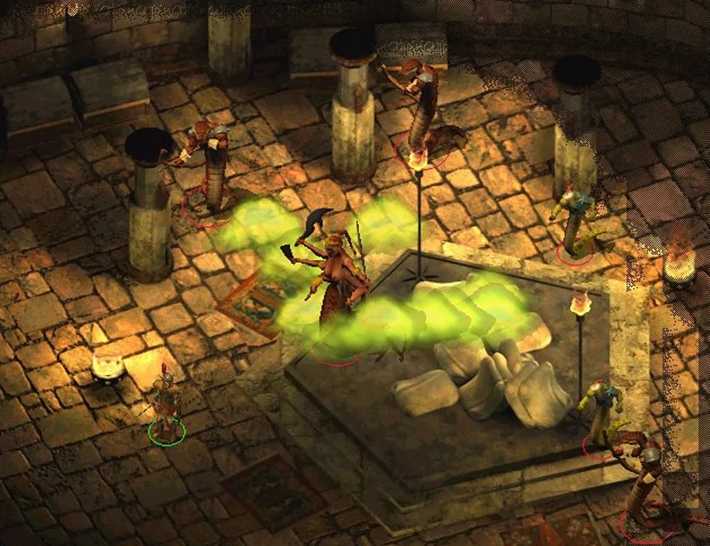Следующий – миконидами; также ничего страшного. А вот когда натолкнётесь на сонм громадных скелетов – значит, вскоре встретитесь с главным злодеем.