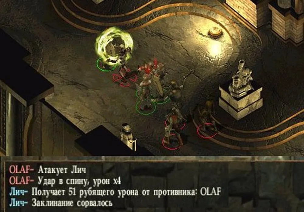 Тогда потихоньку отманиваем громадных костяных стражей и расправляемся с ними. Затем вызываем своих скелетов, элементалей и прочих; под контролем невидимого воина направляем их на мумий. Когда те будут окружены, можно помочь стрельбой из луков и метательным оружием.