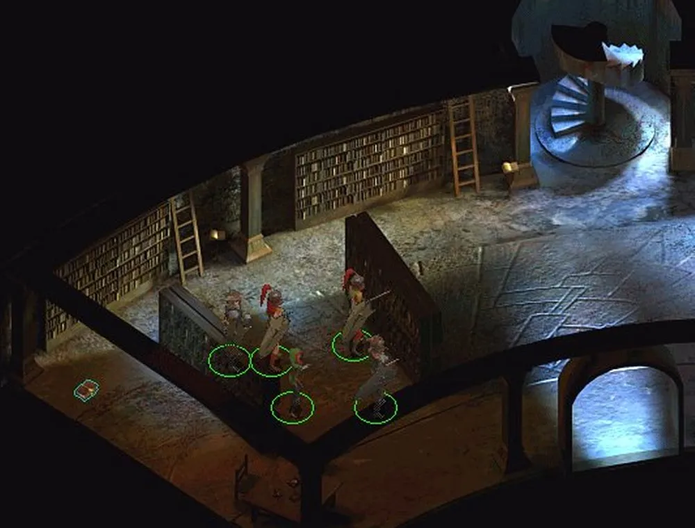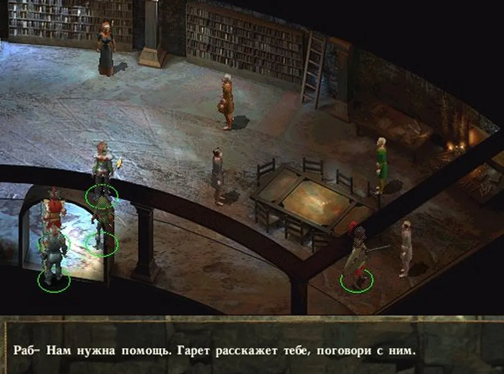 Кроме храма в центре здесь есть ещё одна важная для прохождения локация – за сломанным висячим мостом. Чтобы его починить, необходимо поговорить с одним из бежавших пленников. Если забудете это сделать – ничего страшного, книгу, позволяющую произвести ремонт, можно найти на полу библиотеки.