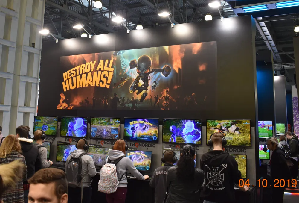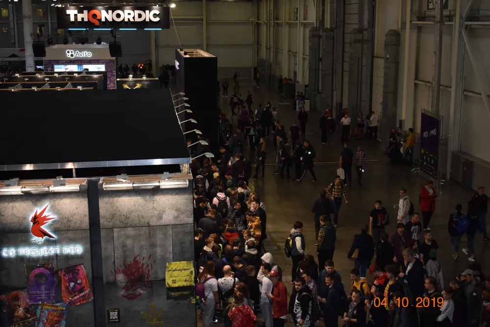 Я вбежал в залы без десяти минут десять, и, когда подбежал к закрытому стенду с «Киберпанком» - был где-то двухсотым. (Ещё через десять минут очередь увеличилась в несколько раз.) Пока стоял в очереди, сделал пару снимков ближайших стендов.