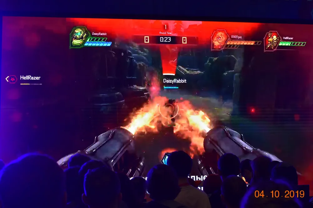 В общем, ничего особенно нового, кроме того, что узнал о сетевом режиме, во время которого два игрока управляют «боссами из монстров, а третий - «Думером», их противником. (Ведущий заявил, что раньше игроки называли героя - «Думгай», а теперь он – «Палач Рока». Ерунда, игроки в первые части называли его - «Думер»!)
