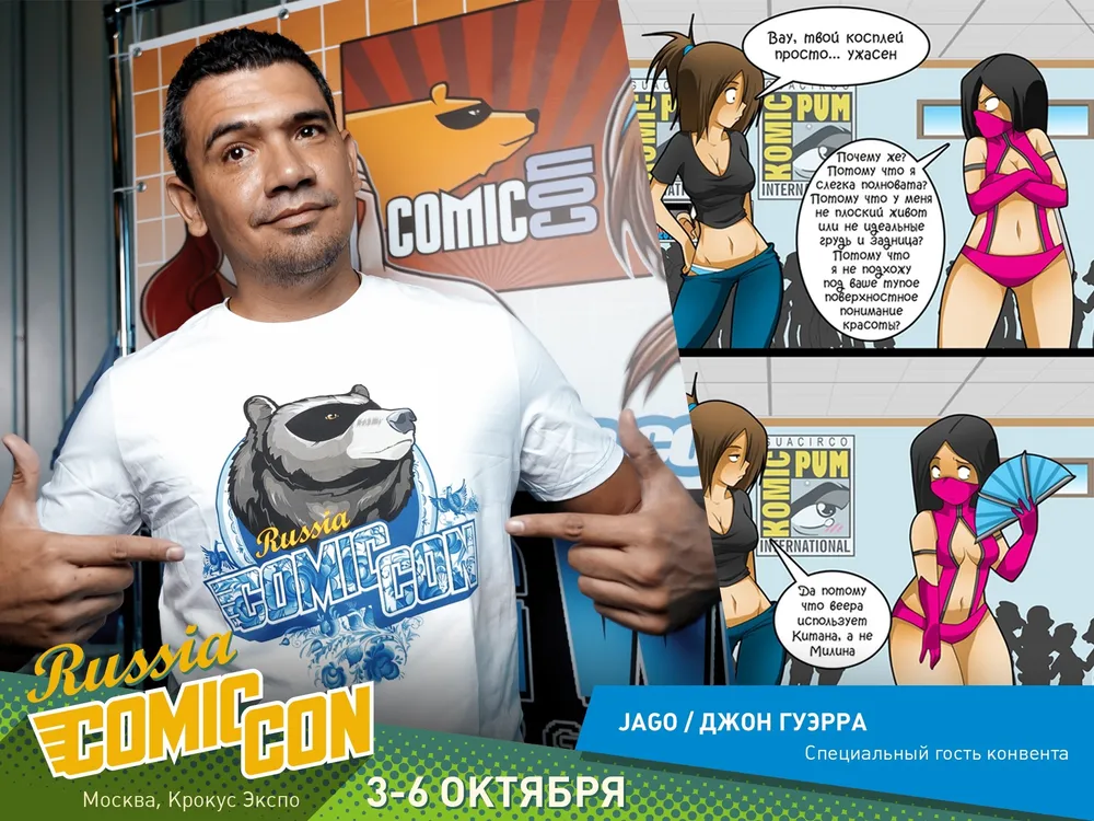 Российский Comic Con посетит колумбийский карикатурист и иллюстратор Джон Гуэрра, известный под псевдонимом JaGo, автор суперпопулярных веб-комиксов Living with HipsterGirl & GamerGirl! В обычной квартире селятся компьютерный инженер Артур, геймерша Эрика и хипстерша Софи. Они такие разные, и все-таки они вместе. Их приключения растянулись уже на несколько сотен выпусков, а JaGo и не планирует останавливаться!
