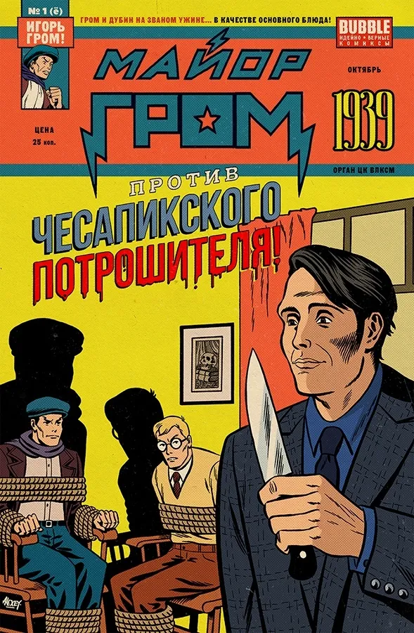 А в дополнение к презентации и прочей движухе вокруг картины BUBBLE порадует посетителей фестиваля и поклонников Игоря Грома особым выпуском комикса «Майор Гром против Чесапикского потрошителя», оформленным в художественном стиле 1930-х – начала 1940-х гг.