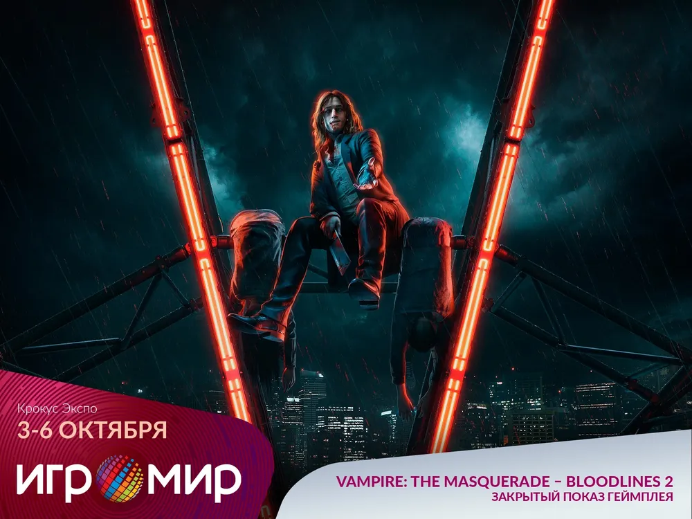 Vampire: The Masquerade – Bloodlines 2. Посетители ИгроМира первыми (!) в России смогут увидеть 20 минут геймплея игры на русском языке! Для этого «Бука» построит антуражный вампирский кинотеатр с баром, тату-салоном и другими интересными активностями. Билеты на сеансы можно получить у вампиров, разгуливающих по территории выставки.